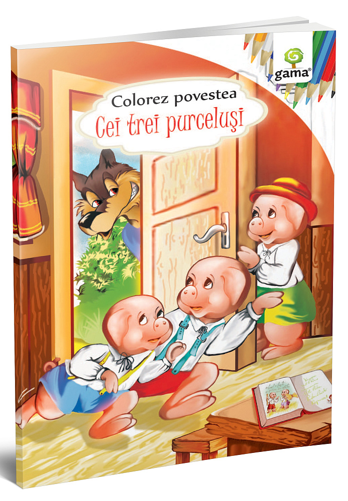 Aventurile incredibile ale Celor trei purceluși se dezvăluie într-o nouă carte de colorat cu poveste. Fiecare pagină de colorat este însoțită de una identică, gata colorată, ce poate fi folosită drept model. Desenele sunt simple, cu linii clare și groase, pentru a ușura efortul de a respecta conturul.