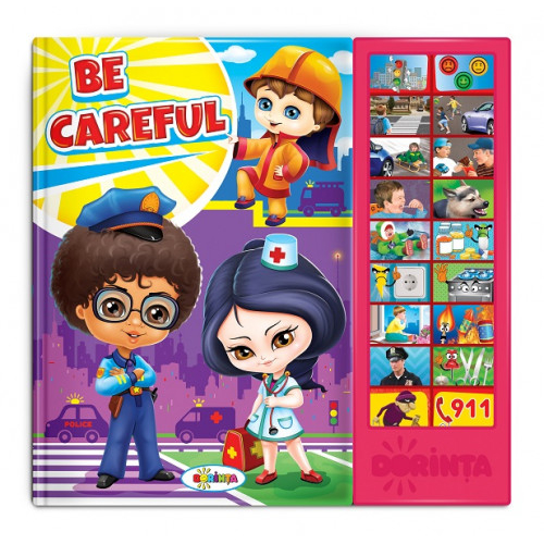 Cartea are paginile cartonate, ilustratii color sugestive, iar daca apesi cate unul din cele 18 de butoane atasate vei auzi lecturat textul de pe fiecare pagina a cartii.