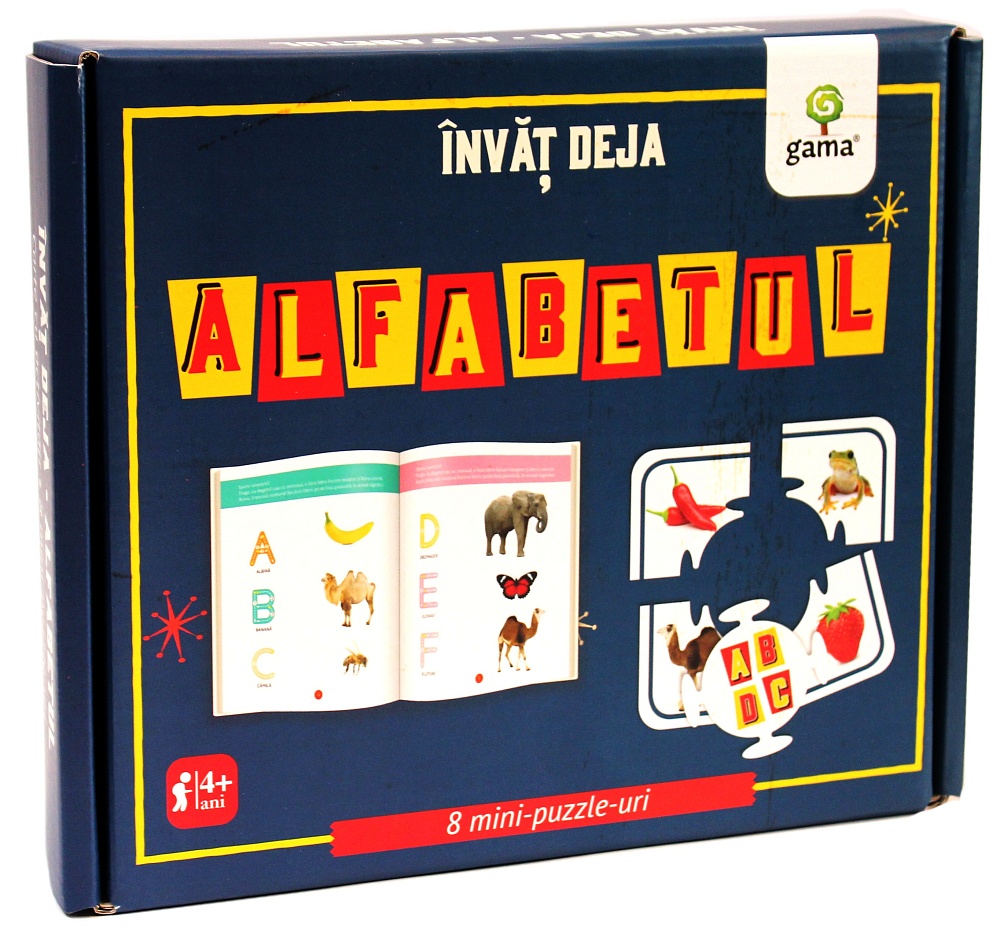 Cutia conține carte de 16 pagini și 8 puzzle-uri pentru învățarea alfabetului. Volumul este potrivit pentru copiii de 3-5 ani.