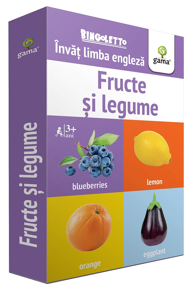 Bingoletto. Fructe și legume reprezintă un sistem inedit de a învăța limba engleză, inspirat de popularul joc de bingo. Cu ajutorul acestei metode, copilul va învăța cu ușurință denumirile unor fructe și legume, îmbogățindu-și astfel vocabularul.