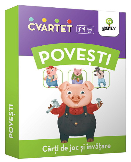 Cvartet • Povești este un joc de cărți educativ. În timp ce încearcă să formeze cele mai multe „cvartete” pentru a câștiga, copilul își reamintește personajele principale din cele mai îndrăgite povești și socializează cu alți copii.