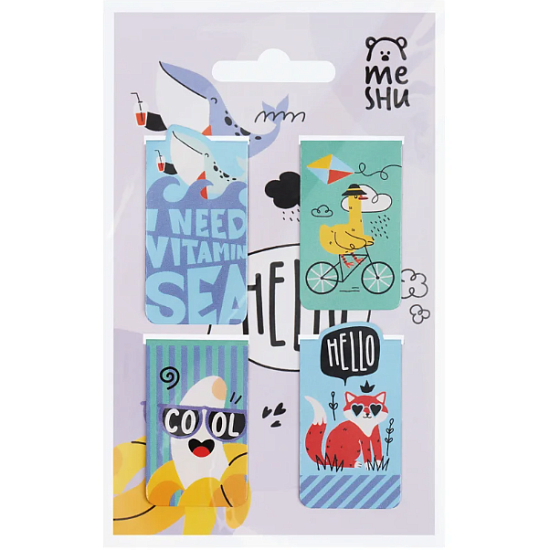 Semnul de carte magnetic MESHU Summer party te ajută să reții și să găsești rapid pagina dorită a cărții. Baza magnetică completă va fixa ferm semnul de carte în locul potrivit. Setul include 4 semne de carte de diferite forme și dimensiuni, cu modele drăguțe și moderne. Acest lucru va face procesul de citire sau studiu și mai captivant. Setul este ambalat într-o pungă.