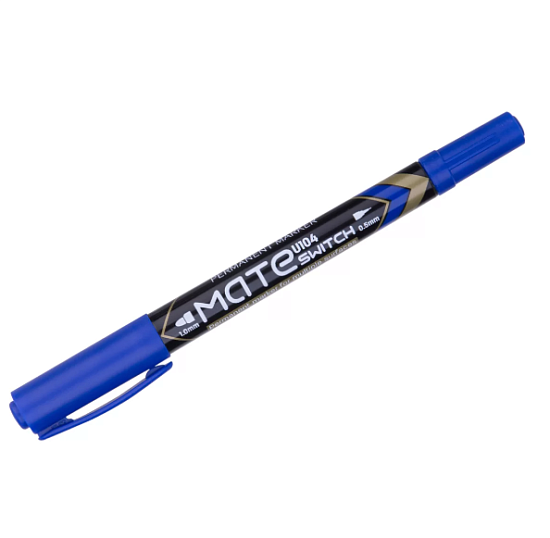 Marker permanent DELI Mate, dublu, 1.0/0.5mm, albastru, DLEU10430