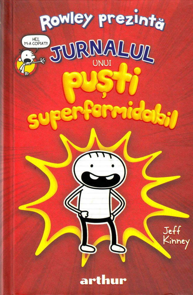 „Salut, sunt Rowley Jefferson și asta e cartea mea. Acum am și eu un jurnal intim cu prietenul meu Greg. Cartea mea se numește „Jurnalul unui puști superformidabil”, pentru că asta îmi spune tata mereu: „Ești un puști superformidabil!”