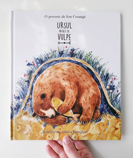 "Ursul păcălit de vulpe" este o poveste de Ion Creangă, una din cele mai cunoscute. Textul a rămas cel clasic, cu toate expresiile pline de haz ale autorului, iar ilustrațiile sunt făcute printr-o prismă modernă de Aliona Bereghici, astfel încât, vulpea știe nu numai să fie șireată dar are și maniere la masă, iar ursul merge la prins pește cu oboroaca și este un visător - norii i se par o mulțime pești zburători. "Ursul păcălit de vulpe" este cartea pe care vrei s-o citești cu copiii, s-o faci cadou, s-o studiezi pentru detaliile ilustrațiilor și mai ales - e o noutate pentru colecționarii de carte pentru copii. Pentru că toate dar absolut toate paginile sunt ilustrate. Aceasta carte este o idee care aparține integral ilustratoarei Aliona Bereghici.