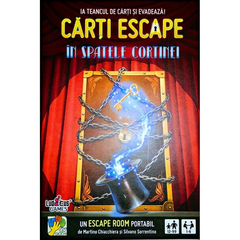 Carti escape: In spatele Cortinei este al cincilea titlu dintr-o serie de jocuri de cooperare inspirat din camere de evadare, in care un grup de oameni este "prins" intr-o camera plina de puzzle-uri, enigme si obiecte ciudate. Scopul jocului este de a rezolva puzzle-ul, de a intelege complotul povestii si de a folosi inteligent elementele gasite pentru a iesi din camera, cat mai repede posibil.