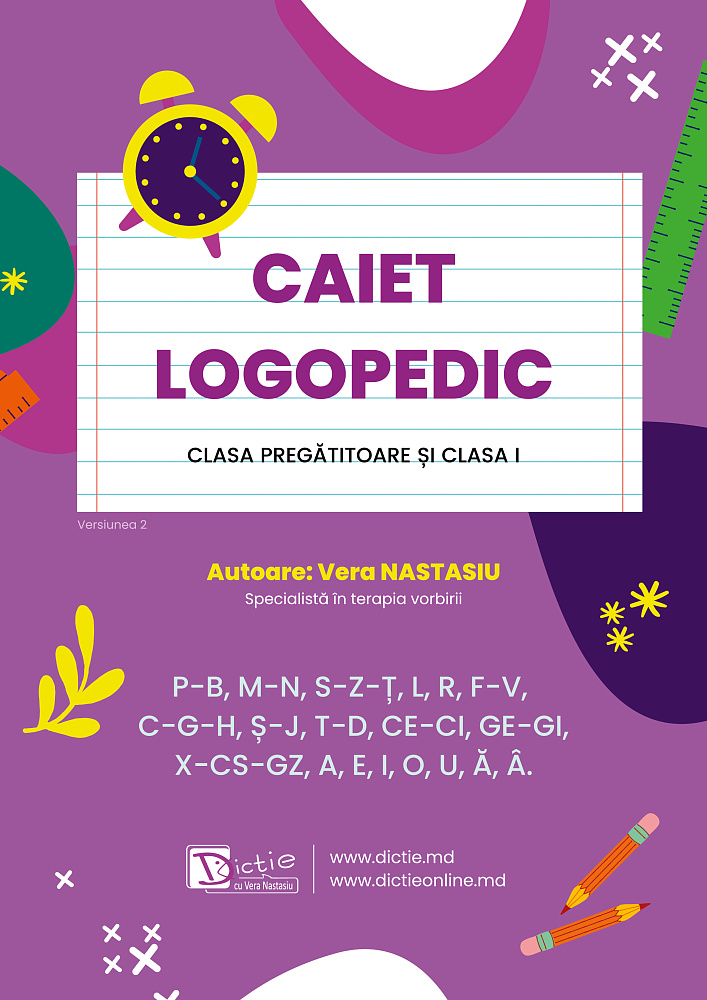 Are un auz fonematic alterat și evită cuvintele care conțin un anumit sunet? Devine nervos și frustrat, pentru că nu este înțeles? Vorbește cu limba printre dinți la S-Z-Ț, Ș-J, CE-CI, GE-GI, grasiază sunetul R? Atunci ai nevoie de Caietul Logopedic al Verei Nastasiu.