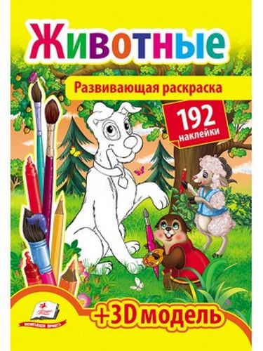 Особенностью развивающей раскраски Животные являются крупные контуры обитателей лесных чащоб.;В результате рисунки получатся большими и красочными. На образцах в правых верхних углах страничек показано, какие цвета следует использовать при раскрашивании котика, коровки, собачки, хрюшки, волка, медвежонка, лисички, белочки с зайчиком, ёжика.;Занятие с этой раскраской станет истинным удовольствием для малыша. Ведь, следуя примеру, надо будет использовать широкую палитру красок, “прочувствовать” цветовые переходы. А это как раз тот случай, когда никто не будет ограничивать его творческое воображение и полет фантазии.;Наоборот, целью данной развивающей раскраски является максимальное развитие этих способностей, а также мелкой моторики, внимательности, сосредоточенности на выполнении конкретной задачи, памяти, сравнительного мышления.;Для закрепления всех этих навыков пушистые друзья подготовили для малышей развивающие задания. Коровка попросит раскрасить продукты из молока, кошка посчитать клубочки с шерстью, а пёсик обвести только те продукты, которые он любит.;Ну, и в дополнение ко всему 192 красочные наклейки. Все вместе они составляют из себя мозаику большого лесного царства, где под голубым небом на ярко-зеленых полянках много красивых цветов, ярких грибов, фруктов. Эту лесную мозаику нужно разнести по страничкам книги, согласно конкретным заданиям от наших пушистых друзей.