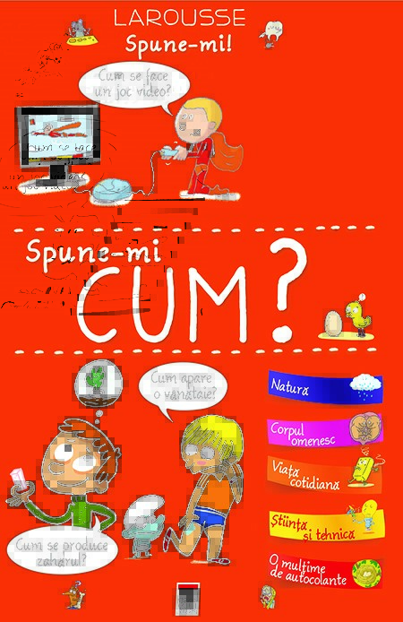 O enciclopedie frumos ilustrata si cuprinzand raspunsurile la mai mult de 200 de curiozitati pe care le au copiii. Vedeta acestui volum este cuvantul CUM: cum a aparut Universul, cum se formeaza ceata, cum ia nastere o insula, cum respira pestii, cum functioneaza plamanii, cum zboara avioanele, cum se face o chitara. Parintii care nu au intotdeauna un raspuns pertinent la intrebarile celor mici gasesc acum un sprijin de nadejde in aceasta carte.