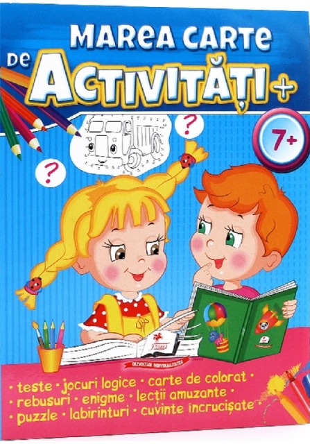 O excelenta resursa educativa, Marea carte de activitati 7+ ani, antreneaza copiilor spiritul de observatie si abilitatile de concentrare prin exercitii de cautare, rebusuri, labirinturi, jocuri de cuvinte si tot felul de alte activitati amuzante.