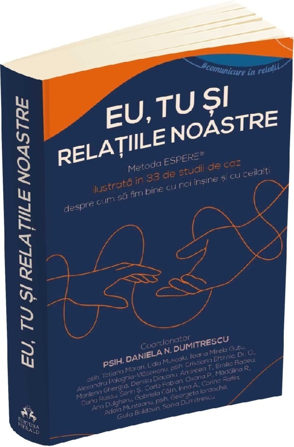 Eu, tu si relatiile noastre este o carte care vorbeste despre relatii – nu doar la modul teoretic, ci si prin viata traita, prin emotii adevarate, prin curajul unor oameni de a-si arata ranile si vindecarile relationale obtinute prin Metoda ESPERE®. Sub indrumarea atenta a psihologului si formatoarei psih. Daniela Dumitrescu, 24 de practicieni ai Metodei ESPERE® impartasesc 33 de experiente reale, momente de transformare profunda in care comunicarea relationala a devenit cheia catre echilibru, sens si reconectare.