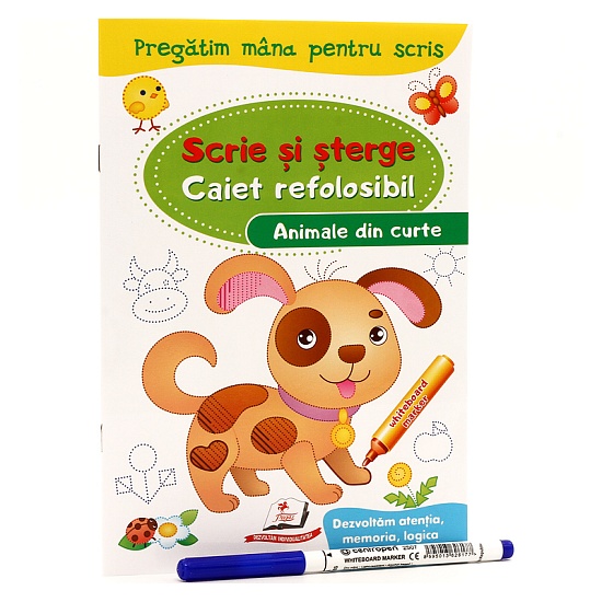 Carioca whiteboard și șervețelul umed – tot ce are nevoie copilul. El va scrie, va șterge și va scrie din nou. Caietele de scriere include activități ce dezvoltă gândirea și memoria, educă răbradea și perseverența.