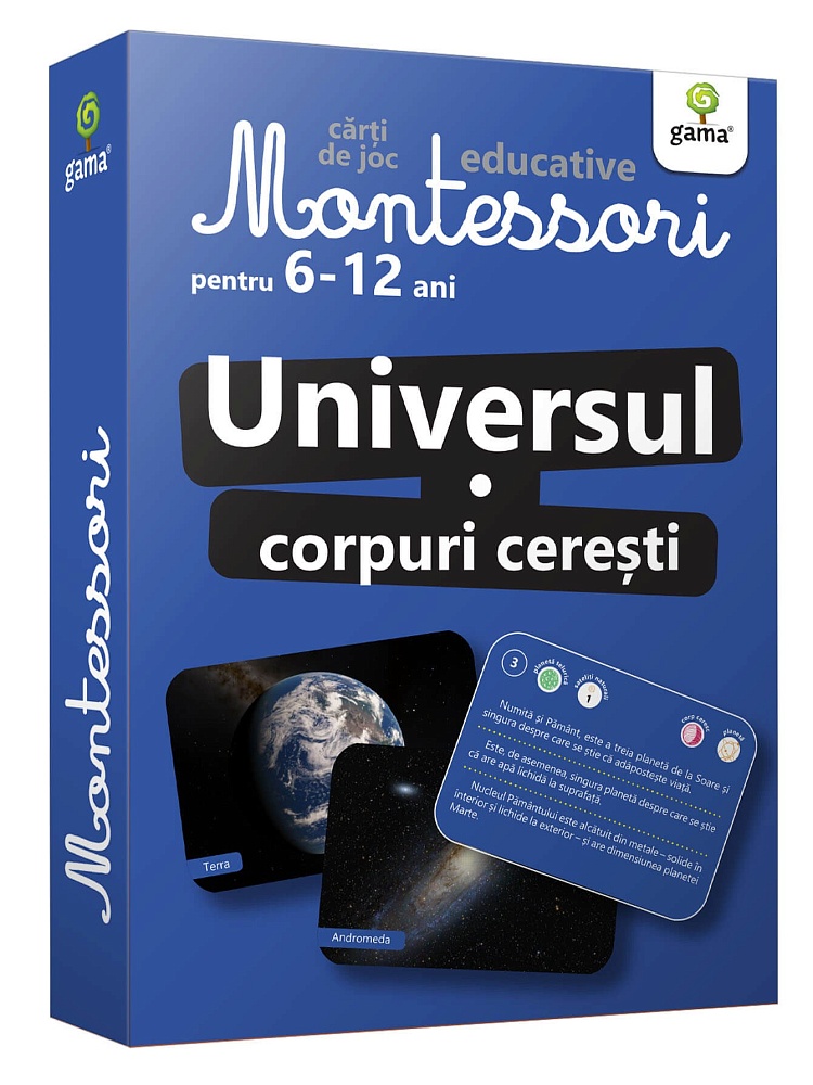 Pachetul oferă o prezentare inedită a planetelor din Sistemul Solar și a principalilor sateliți naturali ai acestora, precum și a unor galaxii, nebuloase sau constelații. Cardurile stimulează curiozitatea și dorința de a ști mai multe despre astronomie, știința care se ocupă cu studiul corpurilor și fenomenelor cerești. Acum, aveți la îndemână un material enciclopedic practic, cu informații interesante, imagini extraordinare și pictograme de clasificare, pe care îl puteți folosi în nenumărate activități.