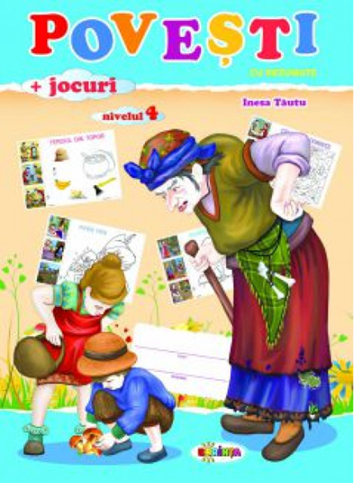 Mapa conține rezumatul poveștilor, iar pe verso: • se pot decupa secvențe din poveste • diferite jocuri distractive • jocuri de logică • jocuri de colorat • răspunde la întrebări ș.a.