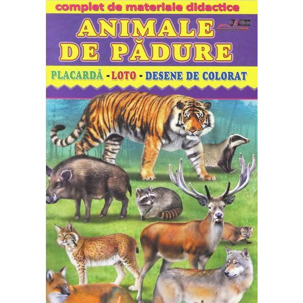 Animale de padure - Placarda, Loto, Desene de colorat. Complet de Materiale Didactice: Animale de padure, cuprinde: placarda, loto si desene de colorat.