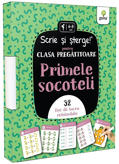 Fisele de lucru ajuta copilul sa-si exerseze abilitatile matematice, rezolvand adunari siscaderi simple, precum si operatii cu mai multi termeni. Cutia contine o carioca nepermanenta, ce permite refacerea activitatilor ori de cate ori este nevoie.