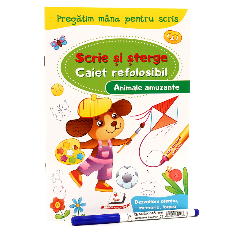 Carioca whiteboard și șervețelul umed – tot ce are nevoie copilul. El va scrie, va șterge și va scrie din nou. Caietele de scriere include activități ce dezvoltă gândirea și memoria, educă răbradea și perseverența.
