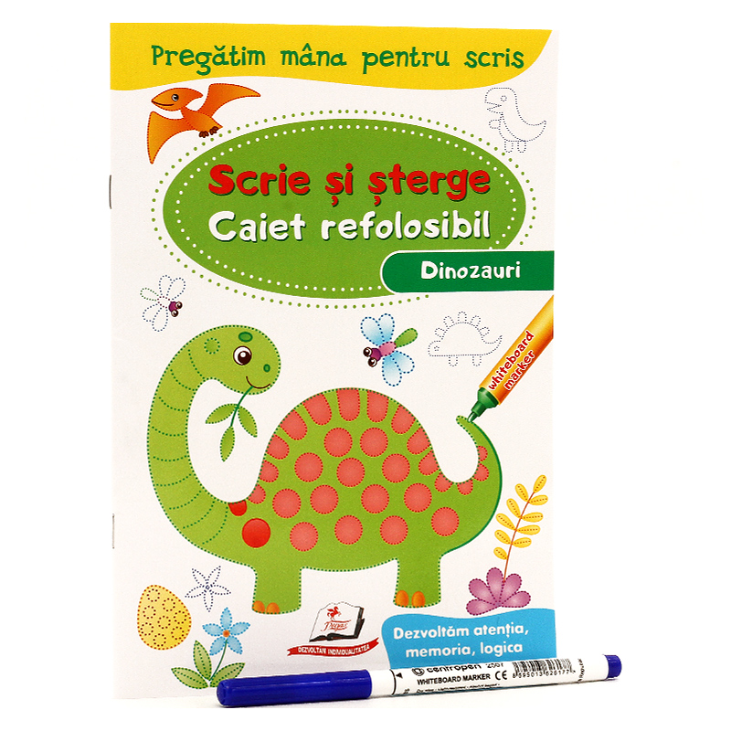 Carioca whiteboard și șervețelul umed – tot ce are nevoie copilul. El va scrie, va șterge și va scrie din nou. Caietele de scriere include activități ce dezvoltă gândirea și memoria, educă răbradea și perseverența.