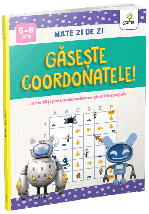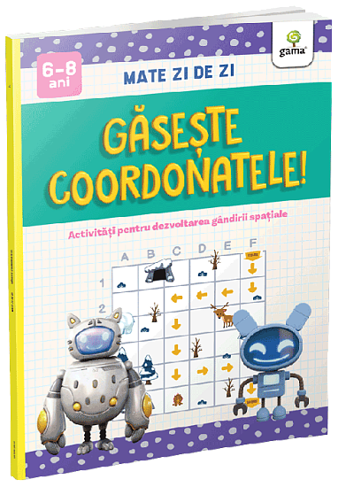 Gaseste coordonatele! contine activitati cu ajutorul carora copilul va invata sa afle pozitia obiectelor in spatii bidimensionale. Diversele activitati - in care va trebui sa afle si sa scrie coordonate, sa coloreze, sa uneasca si sa deseneze urmarind coordonatele - il vor ajuta sa-si dezvolte orientarea in spatiu, invatand sa citeasca eficient informatiile.