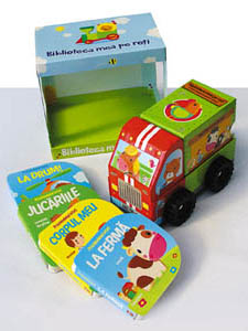 Ce poate fi mai distractiv pentru micuții de 2-3 ani decât un camion plin cu cărți?! În această amuzantă bibliotecă pe roți micuții vor descoperi 4 cărți minunate despre ceea ce le trezește cel mai mult curiozitatea: animalele, corpul lor, jucăriile preferate, mijloacele de transport, culorile, numerele și multe altele.