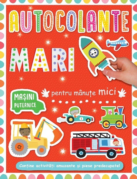 O carte cu activități amuzante și jocuri care dezvoltă creativitatea copilului, învățându-l noțiuni elementare despre diverse mijloace de transport, numere, culori ș.a. Micuțul se va juca și va contura grafismele, va număra, colora și va lipi autocolantele acolo unde se potrivesc. Cartea conține pagini detașabile cu piese predecupate.