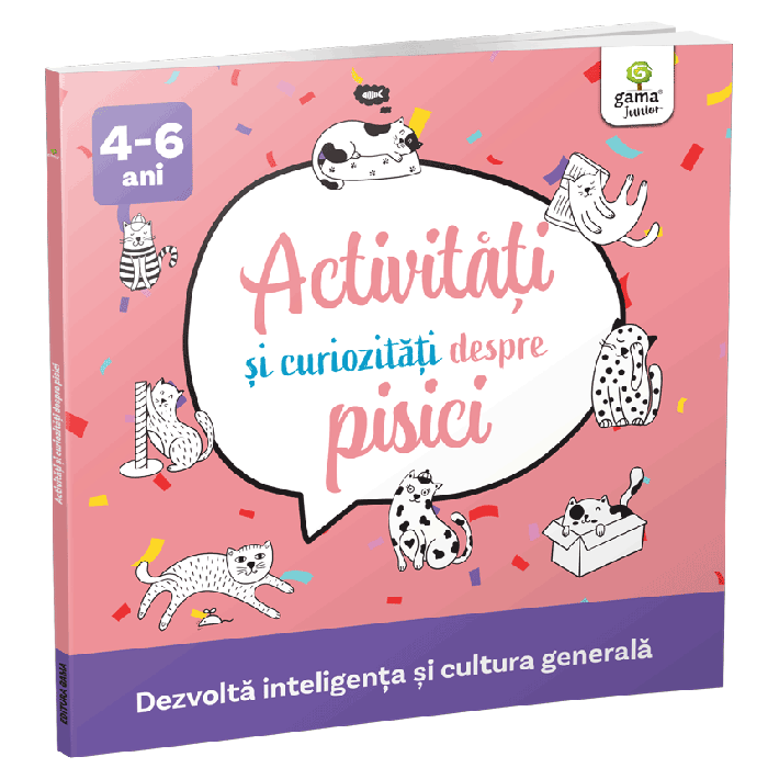 Știai că pisicile urăsc mirosul de citrice și că, de cele mai multe ori, miaună doar ca să comunice cu oamenii? „Activități și curiozități despre pisici” conține informații interesante și activități precum:
