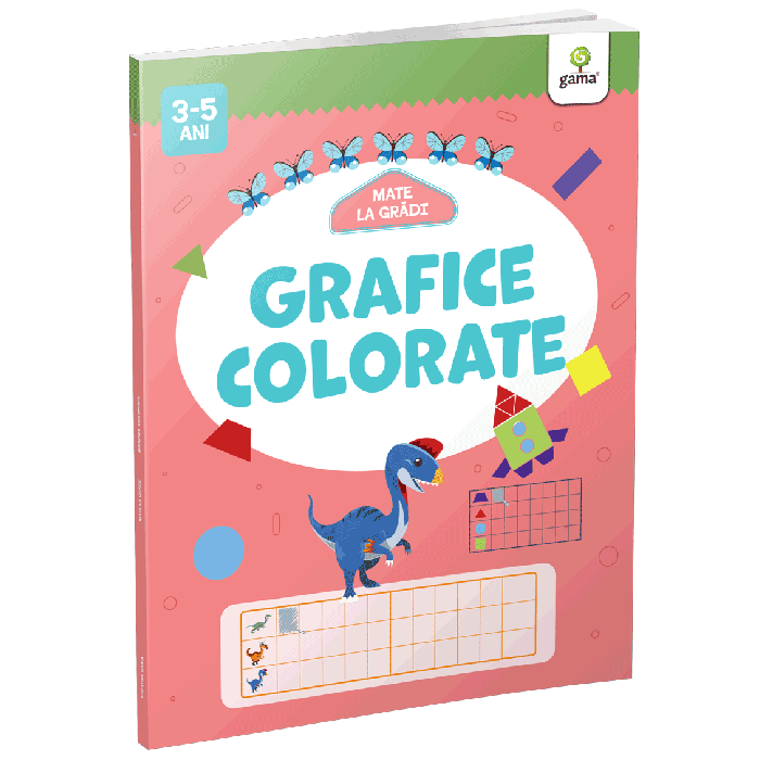 Grafice colorate conține activități în care copilul va trebui să coloreze după anumite reguli și reprezinte în careuri informațiile. Completarea graficelor îi vor dezvolta abilitățile de sortare și îi vor oferi ocazia să-și folosească cunoștințele despre forme și culori. Cerințele scrise cu majuscule îi vor oferi posibilitatea să rezolve singur activitățile și să-și dezvolte autonomia.