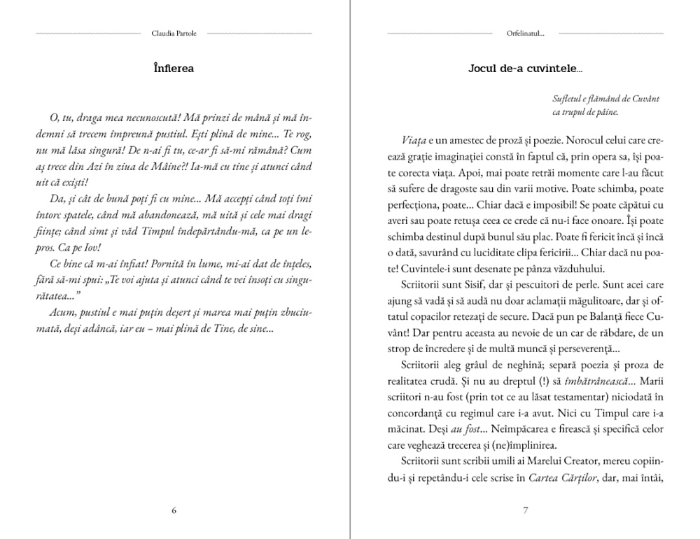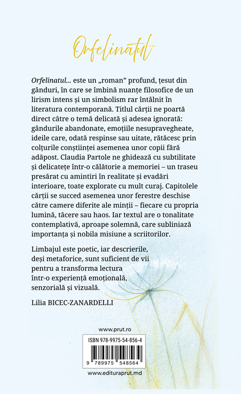 Orfelinatul... este un roman profund, țesut din gânduri, în care se îmbină nuanțe filosofice de un lirism intens și un simbolism rar întâlnit în literatura contemporană. - Lilia BICEC-ZANARDELLI