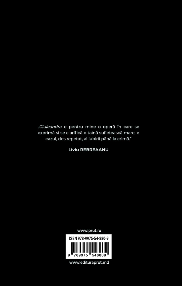 Ciuleandra e unul din marile romane ale literaturii române. Roman de introspecție, roman al alienării mintale și al dragostei sufocante, care cere totul și ia totul. O capodoperă a literaturii române pe care Liviu Rebreanu a lăsat-o posterității.