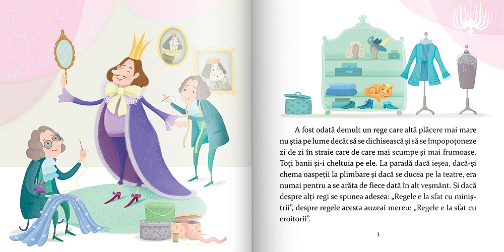 Mult îndrăgita poveste a lui H. C. Andersen, Veșmântul cel gol al regelui, în traducerea deosebită a lui Alexandru Cosmescu Sr., cu o ilustrație inedită semnată de Victoria Rață.