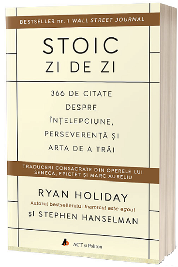 Stoic zi de zi: 366 de citate despre intelepciune, perseverenta si arta de a trai / The Daily Stoic. 366 Meditations on Wisdom, Perseverance, and the Art of Living de Ryan Holiday si Stephen Hanselman este cartea care iti poate schimba perceptia asupra modului in care vezi lucrurile, astfel incat sa te simti in fiecare zi mai increzator, mai optimist si mai fericit. Si mai mult decat atat, cele 366 de citate din marii stoici pe care ti le furnizeaza autorii in acest volum si interpretarile lor te pot ajuta sa iti reconsideri viata si sa incepi sa o traiesti bazandu-te pe alte coordonate.