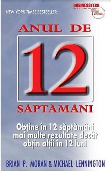 Conceptul Anului de 12 saptamani defineste si clarifica ce este important sa faci astazi, astfel incat sa iti poti realiza obiectivele pe termen lung. Este un sistem de practica deliberata conceput pentru a garanta succesul." - Brian P. Moran si Michael Lennington