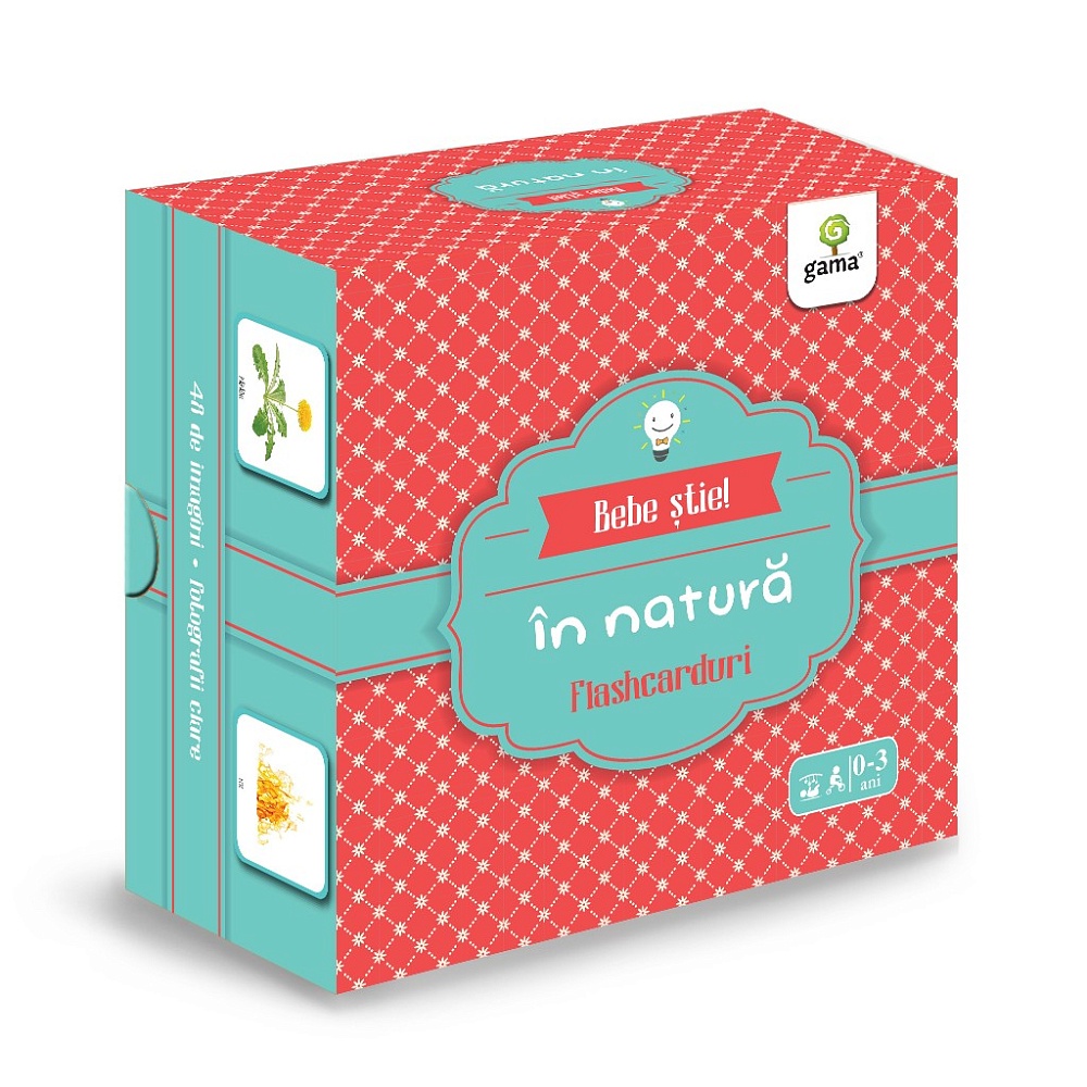 Bebe știe! În natură este special creat pentru stimularea vizuală a bebelușilor, facilitând construirea vocabularului și învățarea cuvintelor. Pachetul conține flashcarduri din carton rezistent, cu colțuri rotunjite, pe care sunt imprimate 48 de imagini care ilustrează elemente din natură ușor accesibile copilului.