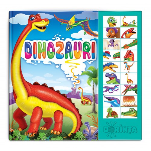 Micii curioși vor putea da pagina, apăsa pe butoane și urmări acțiunea în excepționalele ilustrații cu diferite specii de dinozauri ierbivori și carnivori, de la cei mai mici, la cei gigantici care au populat Pământul în Triasic, Jurasic și Cretacic.