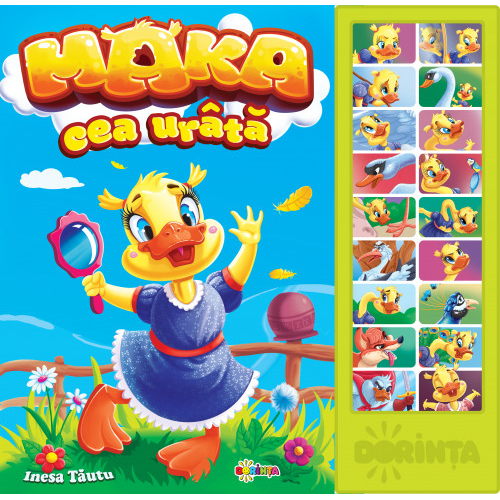 Micii curioși pot da pagina, apăsa pe butoane și urmări acțiunea în frumoasele ilustrații, audiind, în același timp, povestea în versuri despre rățușca Maka căreia nu-i plăcea cum arată.