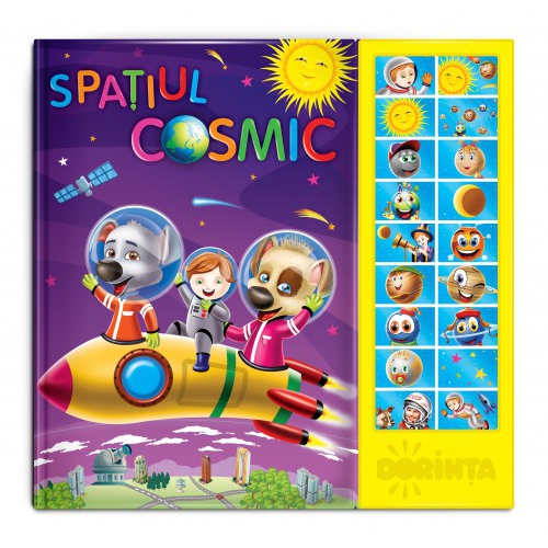 Micii curioși pot da pagina, apăsa pe butoane și urmări acțiunea în frumoasele ilustrații, explorând, în același timp, spațiul cosmic și învățând o mulțime de noțiuni.