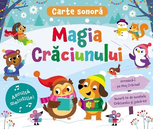 O carte care îi va face pe cei mici să se bucure de feeria sărbătorilor de iarnă! Apăsând pe butonașe, ei vor putea asculta melodiile vesele și se vor juca ghicind sunetele. Culorile vii și imaginile captivante din paginile cărții îi vor încânta pe copii, aceștia petrecând clipe minunate în compania lui Moș Crăciun și a ajutoarelor sale.