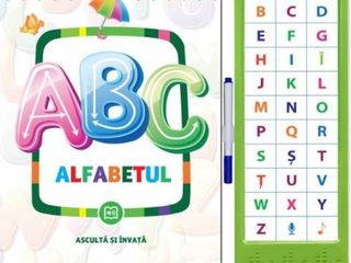O carte minunată care îl va ajuta pe copilul dumneavoastră să învețe literele într-un mod distractiv! Această carte îi oferă celui mic o modalitate ușoară şi amuzantă de a învăța alfabetul limbii române. Apăsând pe butoane, micuțul va asocia fiecare literă cu sunetul, iar cuvintele cu imaginea. De asemenea va putea să scrie literele și cuvintele de atâtea ori de câte ori va fi necesar, ştergându-le şi scriindu-le iar şi iar. Cartea îl va ajuta pe copil să învețe alfabetul, să citească și să scrie literele și primele cuvinte, contribuind în acelașii timp la îmbogățirea vocabularului.