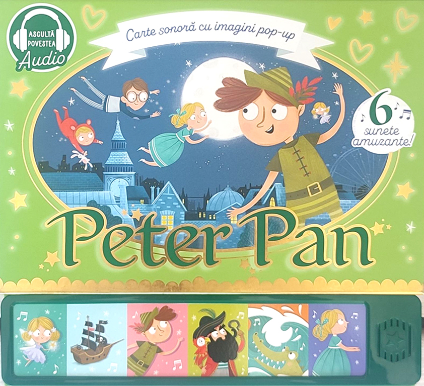 Lumea poveștilor prinde viață cu ajutorul minunatelor imagini 3D și a sunetelor incluse! Peter Pan o invită pe Wendy și pe frații ei în Țara de Nicăieri. Ei pornesc într-o călătorie neobișnuită, unde îl întâlnesc pe Căpitanul Hook și pe copiii pierduți. De ce întâmplări au parte acolo? Hai să aflăm! Scanează codul QR și ascultă povestea.