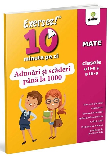 Pentru a atinge succesul academic, orice elev trebuie să exerseze în fiecare zi cunoștințele dobândite la școală. Doar 10 minute pot fi suficiente pentru formarea unei rutine de lucru zilnic, care îl ajută pe copil să înțeleagă mai bine ceea ce a învățat, iar pe părinte – să observe și să evalueze progresele. Caietul de activități suplimentare Adunări 0-1000 din colecția Exersez 10 minute pe zi conține exerciții cu numere formate din sute, zeci și unități, aproximări, exerciții cu termeni necunoscuți, probleme de numerație, calcule rapide, operații multiple și probleme de perspicacitate.