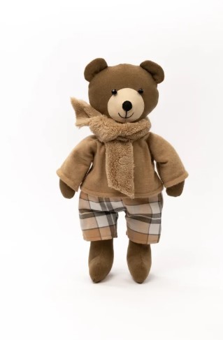 Faceți cunoștință cu Balu — un ursuleț blând, pregătit deja pentru sezonul rece. Îmbrăcat într-un pulover moale, o eșarfă călduroasă și pantaloni scurți în carouri, arată stilat și plin de căldură, exact ca acasă.