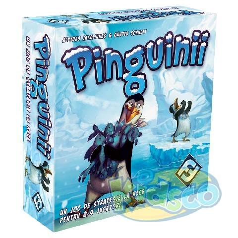 Joc de societate "PINGUINII" Gheata imediat se sparge! Prinde cat mai multi pesti, inainte ca sa-ti scape. Pinguinii tai luneca pe sloiurile de gheata. Fii cu ochii in patru! Daca unul din pinguini ramane blocat pe un sloi de gheata, l-ai pierdut. "Pinguinii" este un joc alert pentru intreaga familie, in care 2-4 jucatori vor ghida pinguinii flamanzi in cautarea celui mai copios pranz. Durata jocului: 20 min Numarul de jucatori: 2 - 4 Recomandat copiilor cu varsta de peste 8 ani.