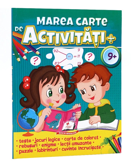 O excelenta resursa educativa, Marea carte de activitati 9+ ani, antreneaza copiilor spiritul de observatie si abilitatile de concentrare prin exercitii de cautare, rebusuri, labirinturi, jocuri de cuvinte si tot felul de alte activitati amuzante.