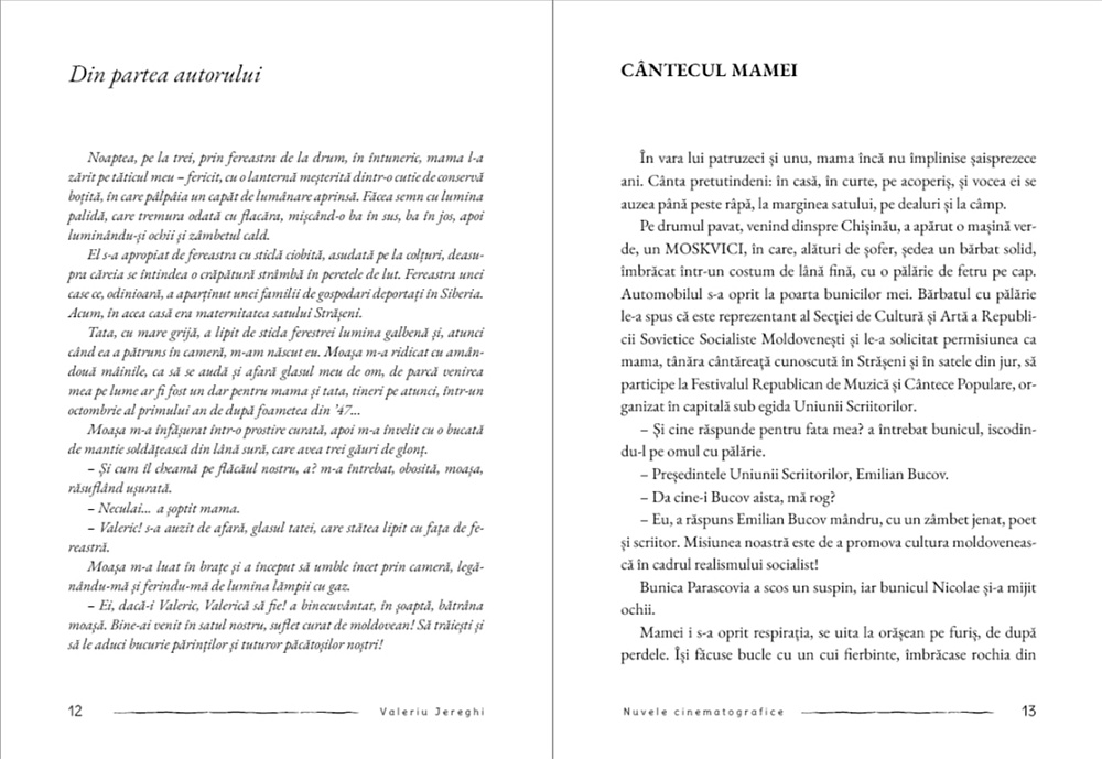 Valeriu Jereghi este un artist care participă la păstrarea vie a memoriei poporului său. Căci, așa cum se spune, fără memorie, o națiune nu poate avea viitor. Odată cu Nuvelele cinematografice, sunt puse în lumină personalitatea aflată în slujba istoriei și calitatea Domniei