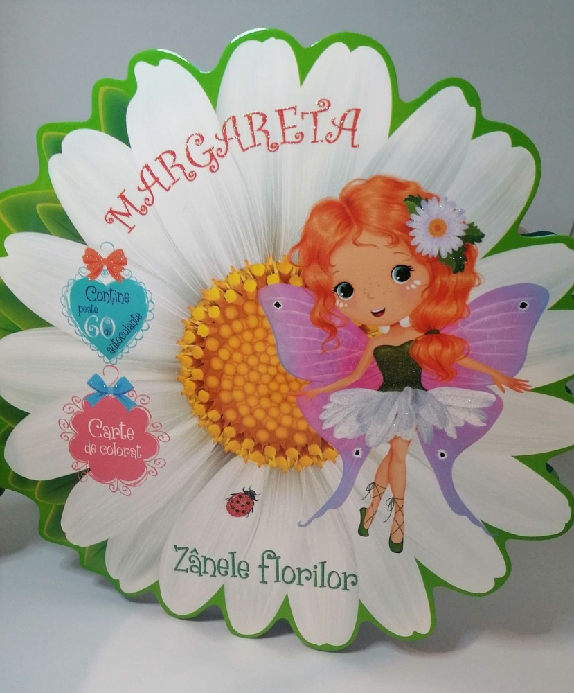 Numele meu este Margareta și sunt o zână a florilor. Te invit într-o lume magică, unde locuiesc eu și prietenele mele. Fiecare dintre noi stă într-o căsuță minunată, înconjurată de mii de flori parfumate. Ajută-ne să ne decorăm locuințele. Colorează împreună cu noi locuințele. Colorează împerună cu noi rochițele, mobilierul, veselele și ustensilele. Lipește unde dorești autocolante cu fluturi, flori, prăjiturele, cadouri sau accesorii.
