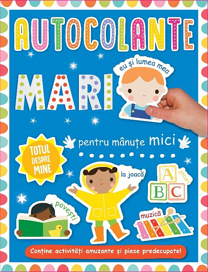 O carte cu activități amuzante și jocuri care dezvoltă creativitatea copilului, învățându-l noțiuni elementare despre familie, emoții, lumea care îl înconjoară, culori ș.a. Micuțul se va juca conturând grafismele, numărând, colorând și lipind autocolantele unde se potrivesc.Cartea conține pagini detașabile cu piese predecupate.