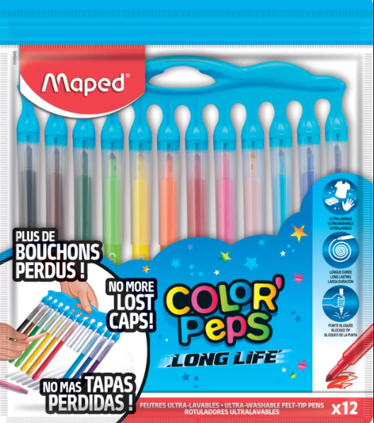 Formă ergonomică în zona de contact, vîrf rezistent, cerneală lavabilă, non-toxică, capac ventilat.