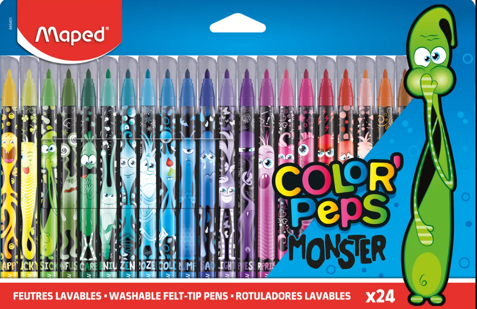 Cariocile din gama Color'Peps au un vârf rotund de 2,8 mm conceput pentru a fi foarte rezistent și anti-scurgere. Cerneala lavabilă permite curățarea ușoară a textilelor în mașină sau cu apă cu săpun pentru mâini. În plus, pot rezista la uscare până la o săptămână fără capac. Cariocile corespund standardelor de jucărie pentru o utilizare sigură.
