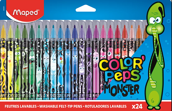 Set de carioci pentru copii, 24 culori, ambalate în cutie din carton.\nFormă ergonomică în zona de contact, vîrf rezistent, cerneală lavabilă, non-toxică, capac ventilat.