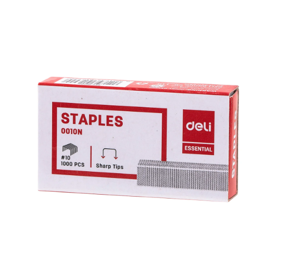 Capsele de capsator Deli nr. 10 sunt utilizate pentru capsarea foilor de hârtie. Capsele sunt galvanizate pentru a fi protejate împotriva coroziunii. Capsele sunt fabricate din metal de înaltă calitate și au capetele ascuțite. Capsare lină. 1000 buc.